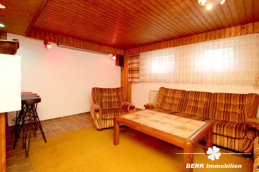 Weitere Highlights sind die sonnige Terrasse mit ca. 25 m² Fläche, zwei große Garagen – eine davon geeignet für einen Wohnwagen – samt Anbau für Gartengeräte und einer 7.000 L-Zisterne, die Gartenhütte mit Freisitz, ein separates Gemüsebeet sowie der vollunterkellerte Bereich mit vielfältigen Nutzungsmöglichkeiten. [. . . weitere Informationen erhalten Sie im Exposé, das Sie gerne direkt über unsere Homepage unter http://www.berk-online.de anfordern können. . . ]
