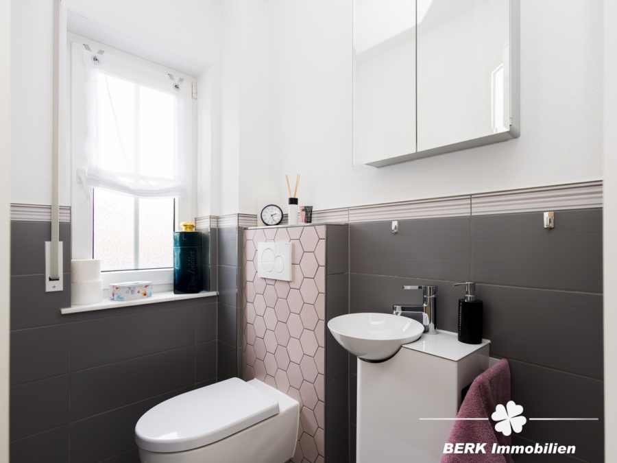 Bereits beim Betreten empfängt Sie das Erdgeschoss mit einem freundlichen Eingangsbereich und praktischem Gäste-WC. Die separate Küche bietet kurze Wege zum großzügigen Wohn- und Essbereich, der das Herzstück des Hauses bildet. Große Fensterflächen schaffen eine helle, einladende Atmosphäre und eröffnen den direkten Zugang zur Terrasse und in den Garten [ . . . weitere Informationen erhalten Sie im Exposé, das sie gerne direkt über unsere Homepage unter http://www.berk-online.de
