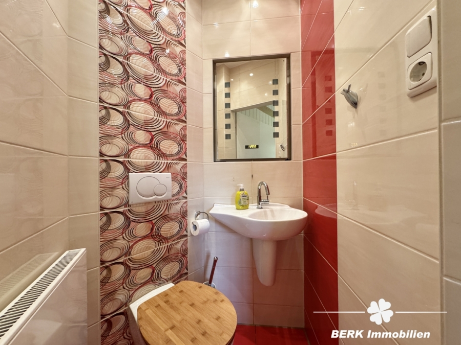 Bodenbeläge aus Fliesen und warmem Laminat schaffen ein behagliches Wohngefühl und unterstreichen den gepflegten Charakter des Hauses.