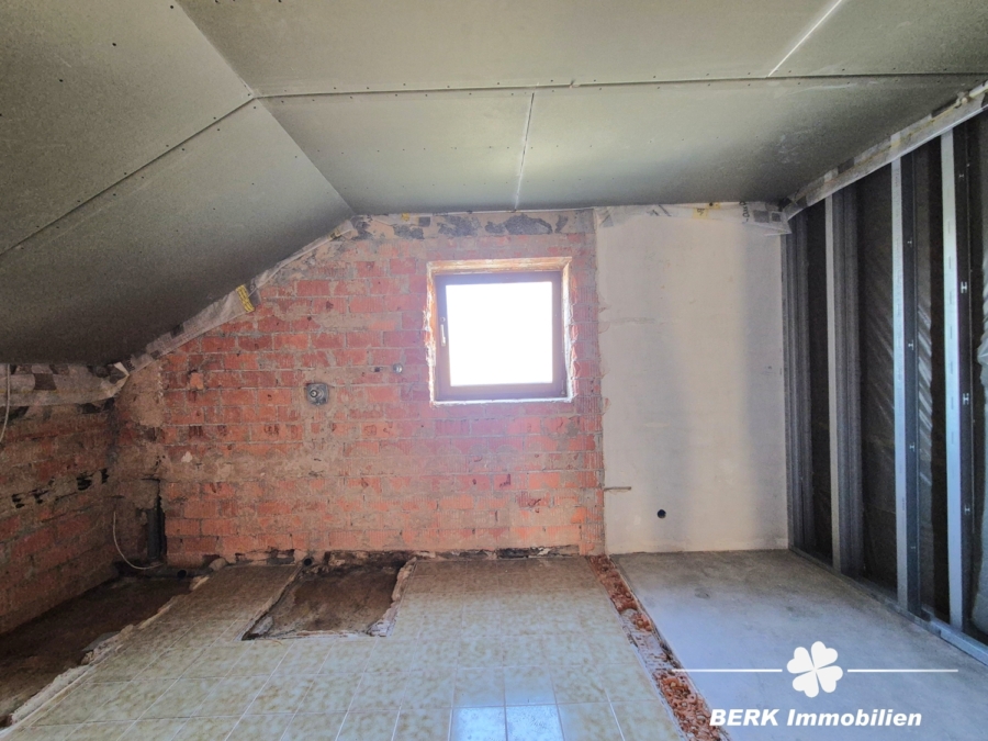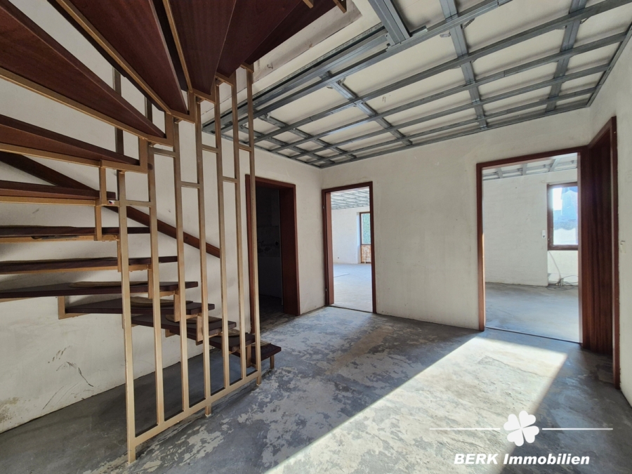 Die Immobilie wurde von den derzeitigen Eigentümern für eine Sanierung vorbereitet, d.h. Böden, Wände und ein Bad sind entkernt, zum Teil wurden bereits Konstruktionen zum Abhängen der Decken angebracht.