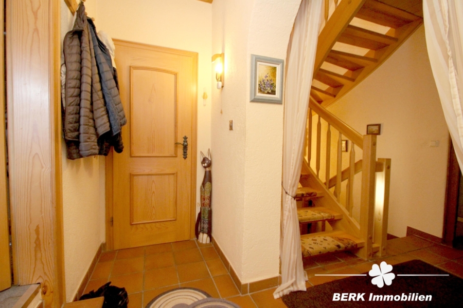 Dieses charmante Einfamilienhaus mit ca. 136 m² Wohnfläche, großer Scheune und weitläufigem Grundstück bietet einen einladenden Grundriss sowie viele modernisierte Details. Zur Erdgeschosswohnung gehört auch das Gästezimmer über der Garage, das über das Treppenhaus erreichbar ist. Highlights wie Kaminofen, zwei Bäder, Sauna und die große Dachterrasse runden das Wohngefühl ab [. . . weitere Informationen erhalten Sie im Exposé, das sie gerne direkt über unsere Homepage unter http://www.berk-online.de