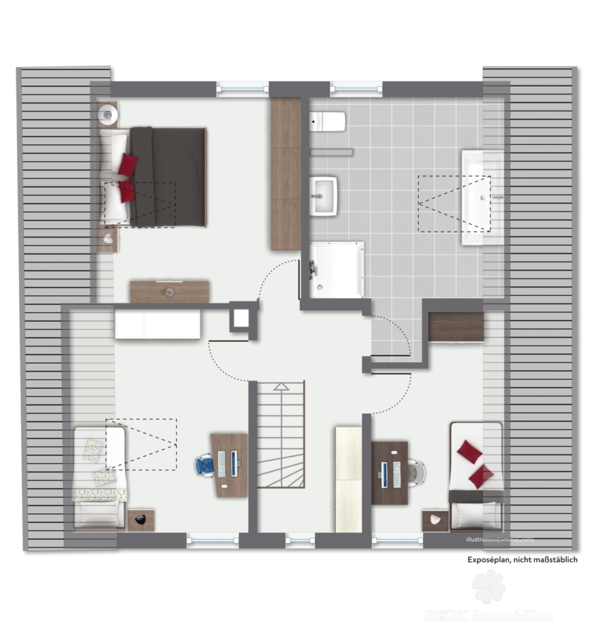 Die gemütliche Echtholztreppe führt ins [ . . . weitere Informationen erhalten Sie im Exposé, das sie gerne direkt über unsere Homepage unter http://www.berk-online.de anfordern können. ]