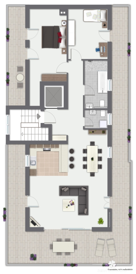 Penthouse-Wohnung mit umlaufendem Balkon und Aufzug direkt in die Wohnung
